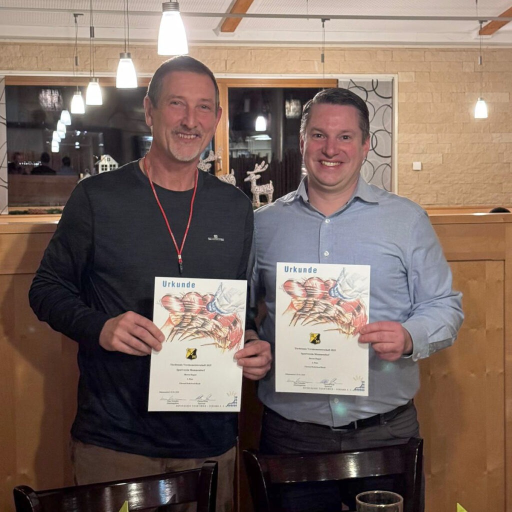 Photo Pokalübergabe: Links Christof Roth – Sportwart, rechts der neue Vereinsmeister Andreas Klein
